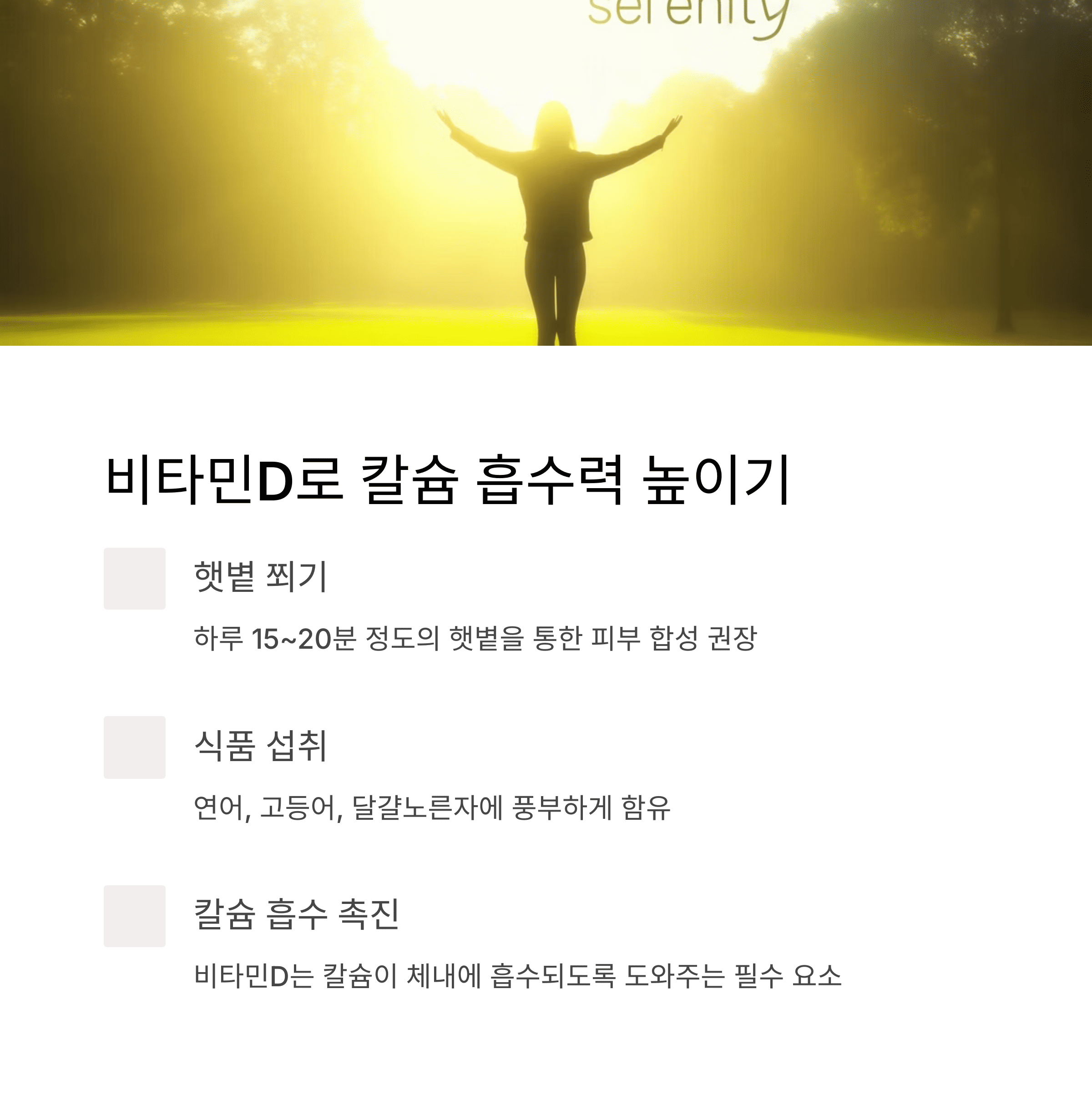 햇볕을 통한 피부 합성을 병행하는 것이 좋습니다.